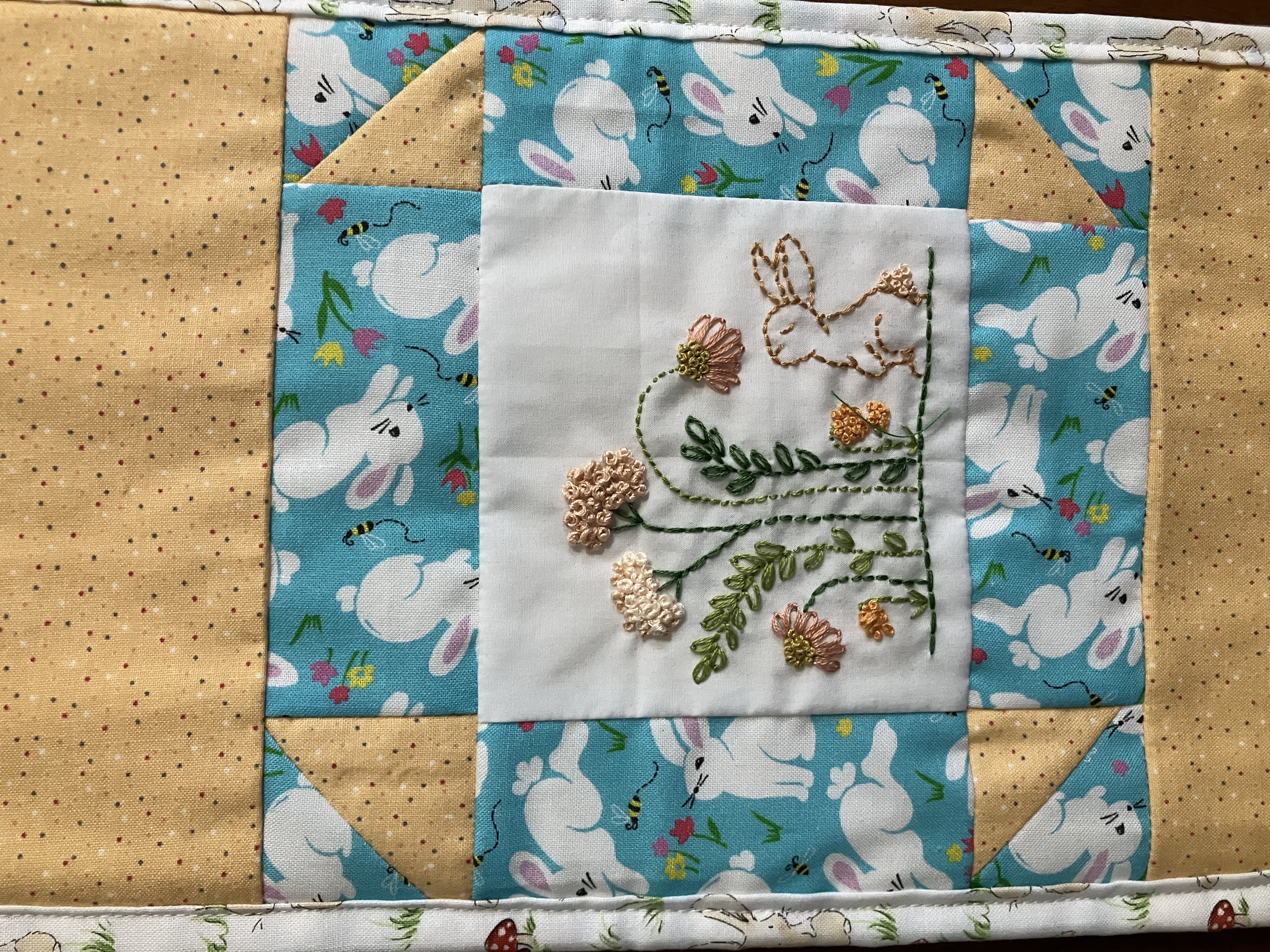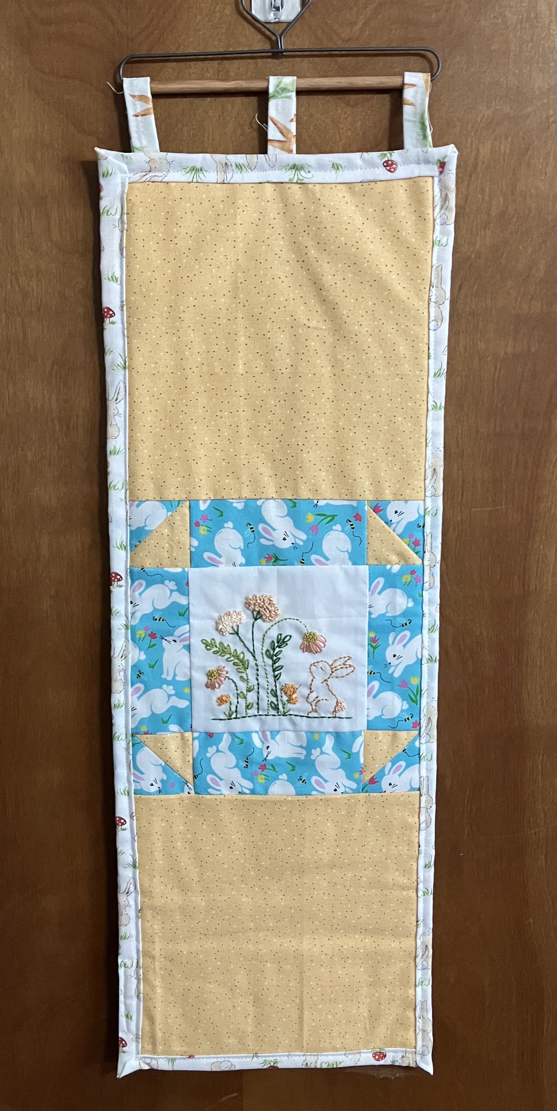 A combination of hand embroidery and quilting makes this wall hanging a sweet addition to your E. aster decor.