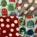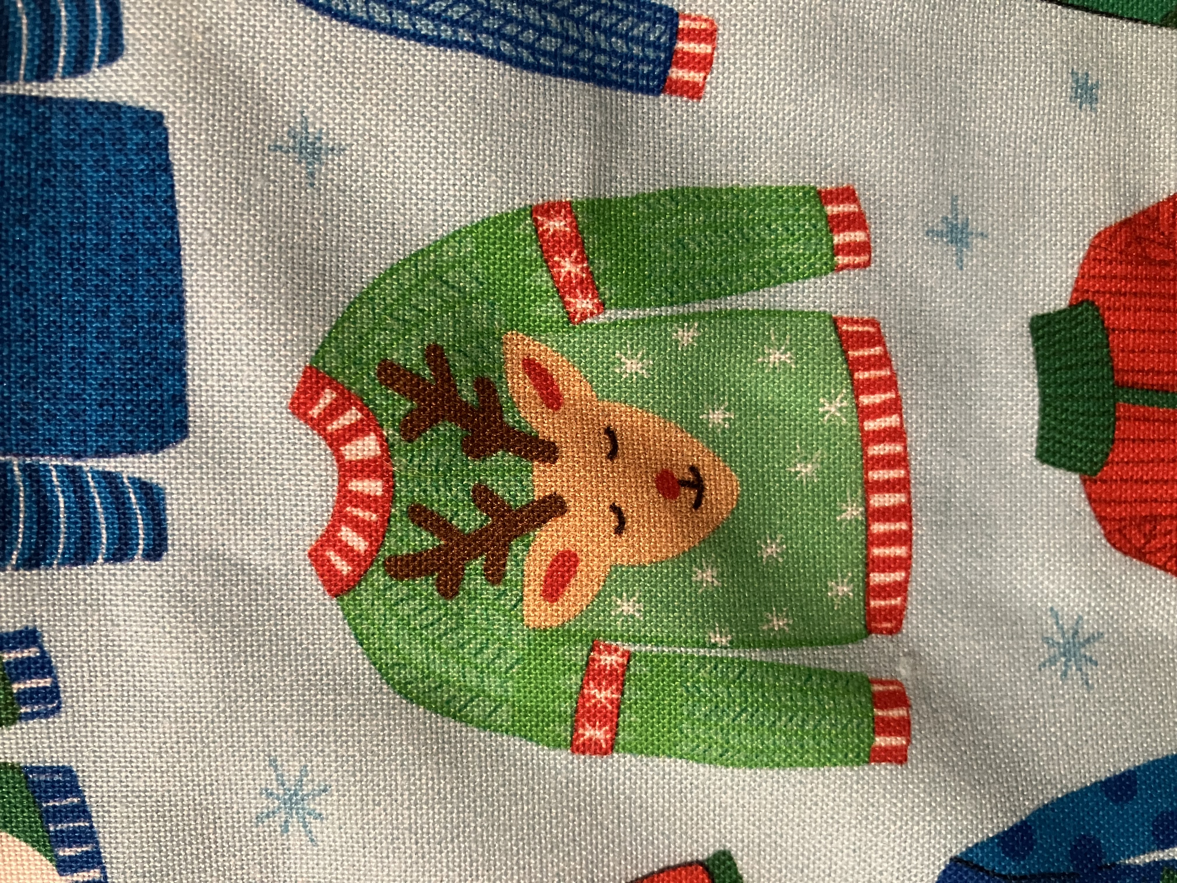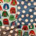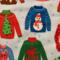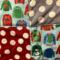 Patterns include cute sweaters featuring reindeer, snowmen and other Christmas prints. Coordinated with big polka dot prints.